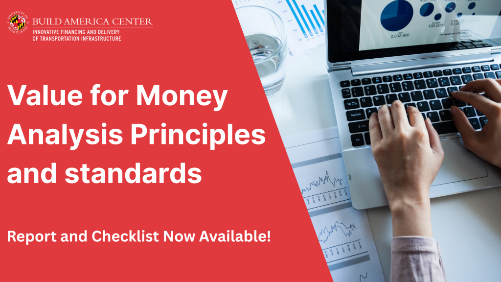 The Build America Center (BAC) is excited to announce the release of the Generally Accepted Value for Money (VfM) Analysis Principles and Standards publication and its accompanying Principles and Standards Checklist. This comprehensive framework provides a standardized approach for evaluating infrastructure project delivery models, offering valuable guidance to agencies navigating the requirements of the Infrastructure … Continue reading Value for Money Analysis Principles and standards: Report and checklist now available